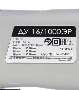 Дрель сетевая ударная Интерскол ДУ-16/1000ЭР 1000 Вт ключевой патрон (57.1.3.00) в Санкт-Петербурге