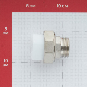 Предназначена для соединения полипропиленовой трубы диаметром 32 мм и фитинга диаметром 1" с внутренней резьбой путем стягивания. Применяется, когда необходимо соединить два неподвижных элемента трубопровода. Принцип соединения – разъемное с уплотнительным кольцом. Герметичность и надежность обеспечивает полукруглая прокладка из EPDM, размещенная в латунном переходнике, имеющем проточку. Плоская поверхность на полипропиленовой муфте, контактирующая с прокладкой, обеспечивает долговечность изделия. Качественная резьба позволяет без особых усилий производить монтаж без риска повредить соединение. Соединения труб и фитингов должны выполняться методом термической полифузионной муфтовой сварки с помощью специального сварочного аппарата. Комбинированные полипропиленовые фитинги с трубной резьбой 1/2", 3/4” и 1 дюйма, не имеющих ответной части «под ключ», следует соединять с ответной резьбой другого фитинга без вспомогательного инструмента, вручную или с использованием специального ленточного ключа, обеспечивающего обхват по всей окружности фитинга.
