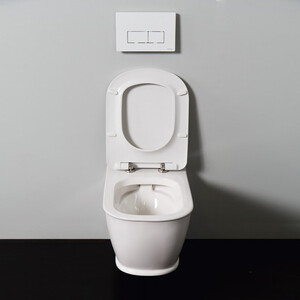 - Жесткая крышка-сиденье из дюропласта, быстросъемная, с механизмом Soft Close.