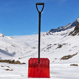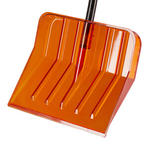 Лопата из поликарбоната обладает высокой прочностью, выдерживает большие нагрузки, не повреждает асфальт и брусчатку, так как не нуждается в усилении металлической планкой. Устойчива к солям и другим агрессивным средам. Данная лопата оснащена V-образной ручкой и черенком из фибергласа, что позволяет значительно снизить вес лопаты в сборе, одновременно сохранив прочность.