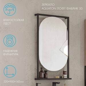Зеркало с полкой прямоугольное 50х90 см в раме черной Aquaton Лофт Фабрик (1A242502LTDU0) в Санкт-Петербурге