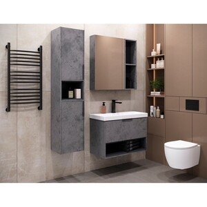 Стильный и функциональный шкаф-колонна станет прекрасным дополнением к ванной комнате. Серый цвет и лаконичные линии придают шкафу элегантный и современный вид. Шкаф изготовлен из влагостойкого МДФ, что делает его идеальным для использования в условиях повышенной влажности. Шкаф-колонна универсальна, может быть подвешена переворачиванием в правом и левом варианте.