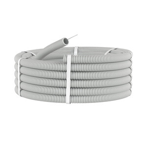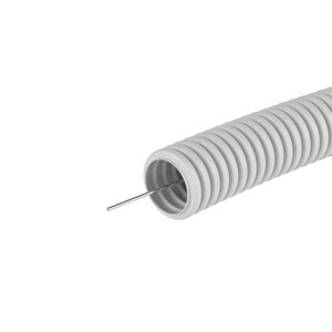 Гибкая гофрированная труба из ПВХ надежно защищает кабель от механических воздействий. Используется для прокладки электрического, компьютерного, телефонного кабелей. Труба этого типа прокладывается в стенных штробах, в пустотах фальшпотолков и фальшстен, в стяжке полов или под фальшполами. Проволочная протяжка облегчает прокладку кабеля в трубе. Диаметр – 16 мм. Материал – самозатухающий поливинилохлорид (ПВХ). Цвет – серый. Гофрированные трубы из ПВХ легкой серии могут эксплуатироваться при температуре от – 25 °С до + 60 °С. Длина – 100 метров.
