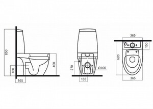 высота 845 мм, ширина бачка 367 мм, глубина (до стены) 610 мм.