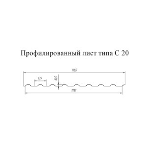 Профнастил С20 1,15х2 м 0,35 мм коричневый RAL 8017