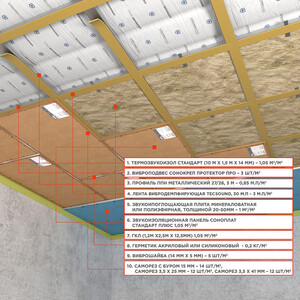Иглопробивное стекловолокно (ИПС-Т) (предназначено для поглощения шума и сбережения тепла), Спанбонд (предназначен для защиты от повреждений и попадания стекловолокна в окружающую среду).