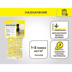 Предназначен при заливке наливных полов для получения ровной поверхности. В отличии от других способов установки маяков для наливных полов, реперные маяки устанавливаются очень быстро и не требуют дополнительных усилий. Не требует извлечения после проведения работ. Изготовлен из пластика ПВХ и имеет клейкое высокоадгезионное основание. Расход – 1-2 маячка на 1 м².