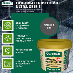 Эпоксидная затирка ОСНОВИТ ПЛИТСЭЙВ ULTRA ХE15 Е предназначена для заполнения и защиты межплиточных швов шириной до 15 мм на полах и стенах в жилых, общественных и производственных помещениях, медицинских учреждениях и помещениях с высокой проходимостью. Применяется на бетонных, цементно-песчаных, цементно-известковых основаниях, гипсокартоне, древесностружечных плитах, основаниях, подверженных деформациям при температурных колебаниях и в условиях периодического увлажнения (в системе «Теплый пол», душевых и ванных комнатах, кухнях, бассейнах, саунах и хаммамах, на террасах и балконах). Особенно рекомендуется в зонах, подверженных воздействию химически агрессивных веществ. Используется для облицовки в цехах пищевой и алкогольной промышленности, в том числе на рабочих поверхностях кухонь, в аккумуляторных, автомойках, лечебных ваннах, пивоваренных заводах, силосах, помещениях для животных, маслобойнях, сыроварнях, лабораториях и т. д. Применяется для заполнения швов всех типов стеклянной плитки и мозаики, для керамической плитки, керамогранита, натурального и искусственного камня (в т.ч. клинкерной плитки), стеклянных блоков.