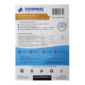 Вспененный полиэтилен, дублирован теплоотражающим слоем из алюминиевой фольги с одной стороны и самоклеящимся слоем с другой.