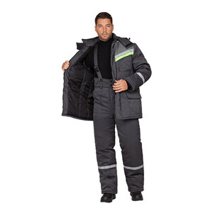 Зимний костюм состоит из куртки и брюк. В костюме используется световозвращающая полоса (СВП) 25 мм.